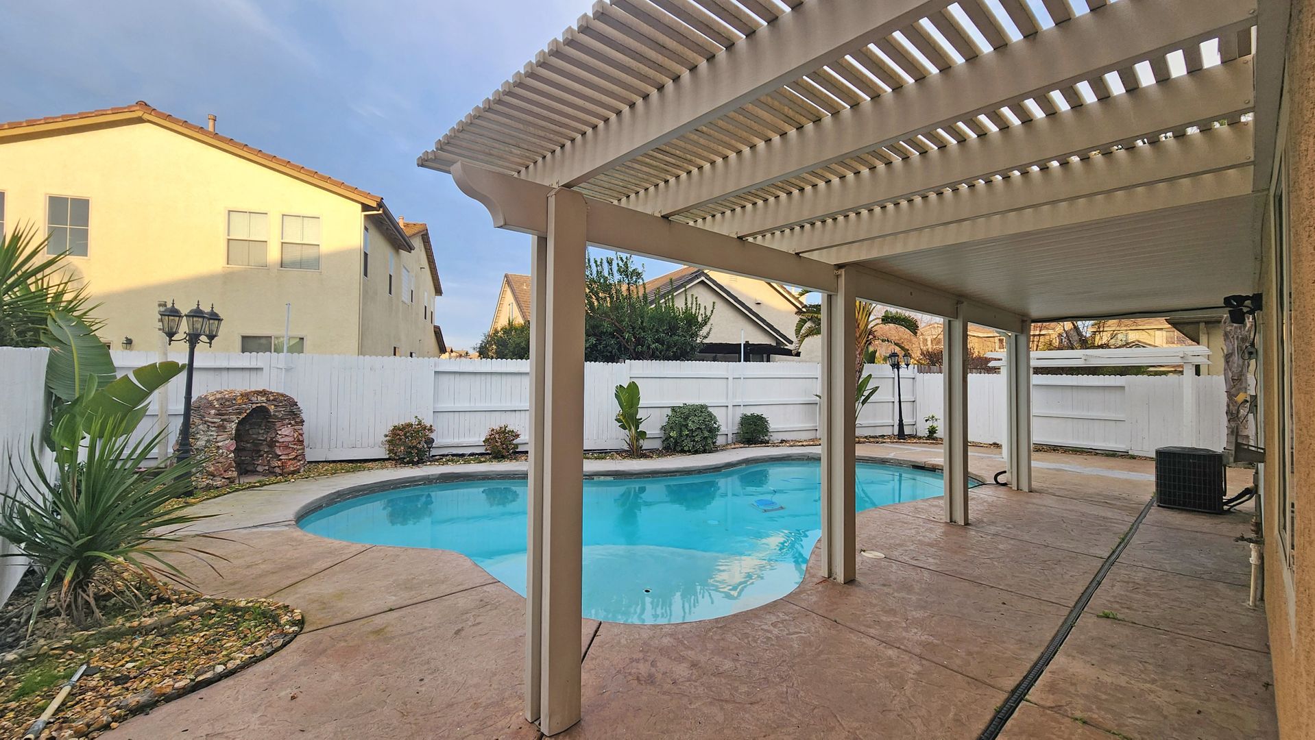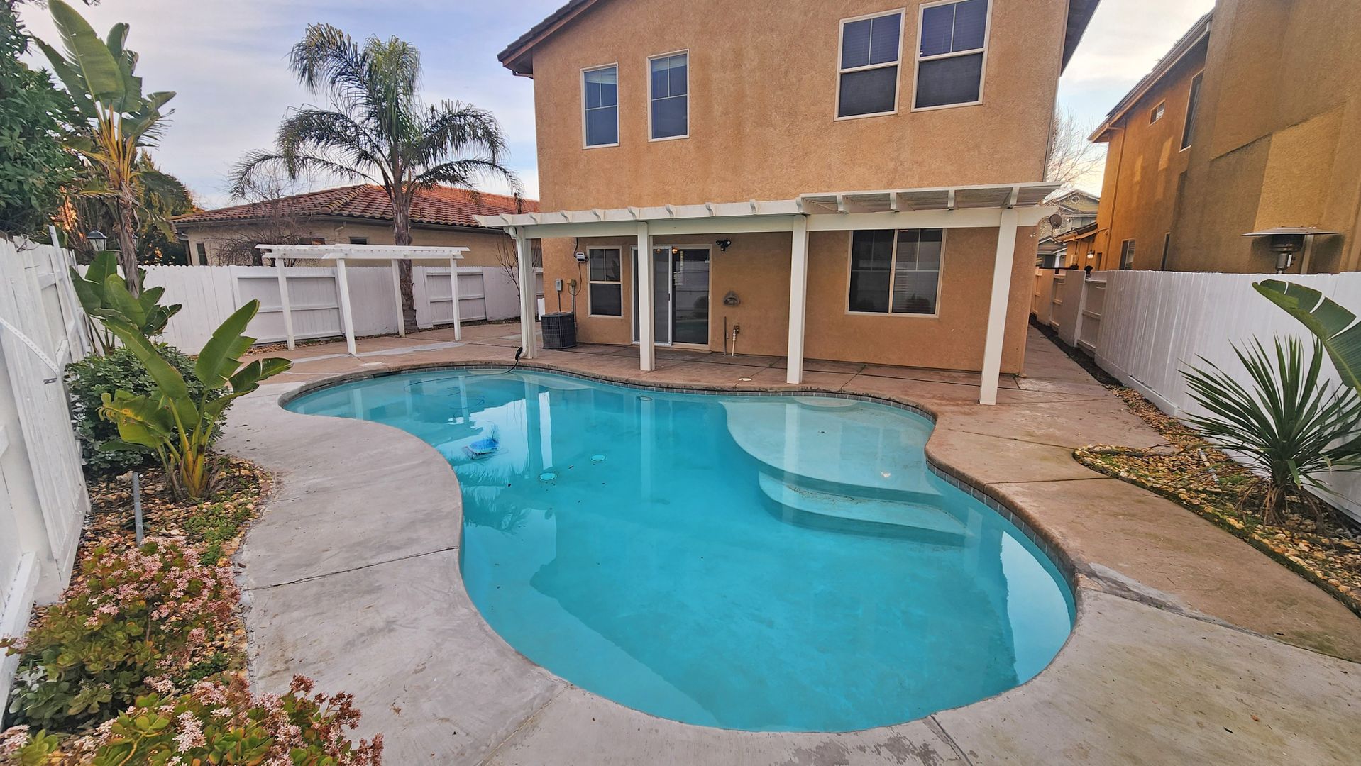 Welcome to this spacious and inviting Meritage Home located in the desirable Bridgeway Lakes neighborhood in West Sacramento, CA. With its prime location in a peaceful cul-de-sac, this home offers a serene and private living experience. Boasting five bedrooms and three bathrooms, this home provides ample space for all your needs. The unique layout includes two bedrooms and one bathroom conveniently located on the first floor, offering flexibility and convenience. Step outside onto the covered back patio, perfect for enjoying the beautiful California weather and hosting gatherings with friends and family. The highlight of this property is the built-in pool, providing a refreshing oasis for relaxation and entertainment. Whether you're looking to take a dip or simply lounge by the poolside, this feature is sure to enhance your lifestyle. This home is ideally situated near local amenities, schools, and parks, ensuring convenience and accessibility. Don't miss out on the opportunity to make this house your home. Apply today and experience the comfort and convenience this property has to offer.